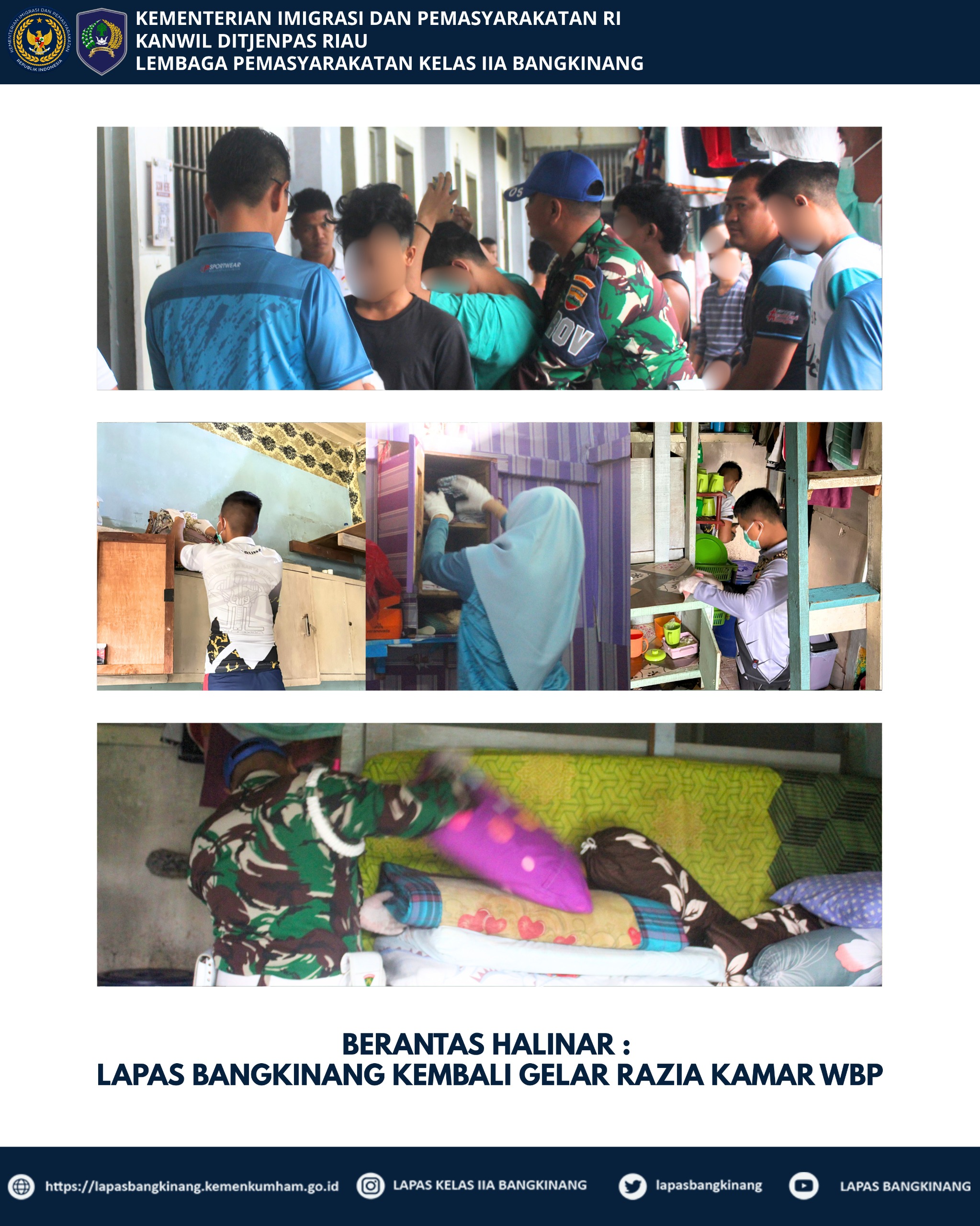 lingkupperiatiwa.com, BANGKINANG- Dalam rangka menanggulangi potensi masuknya barang-barang terlarang ke dalam kamar hunian, Lembaga Pemasyarakatan (Lapas) Kelas IIA Bangkinang, Khusus nya tim Satopspatnal bersama personil APH pada hari ini melaksanakan Razia di beberapa kamar hunian warga binaan, Sabtu (05/07/2025).