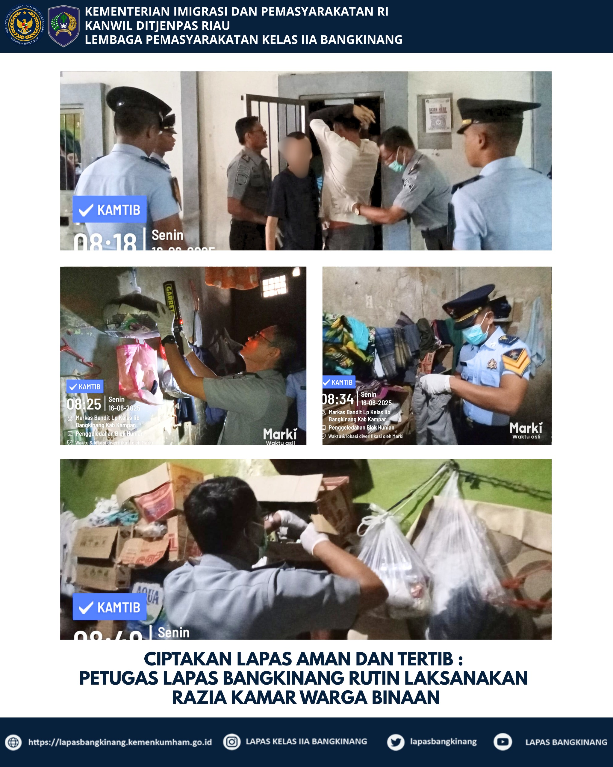 kegiatan Razia ini juga merupakan bentuk dukungan Lapas Bangkinang dalam menindaklanjuti Arahan 13 (tiga belas) Program Akselerasi Menteri Imigrasi dan Pemasyarakatan, Bapak Agus Andrianto khususnya pada poin 1 (satu) yakni Memberantas Peredaran Narkoba dan Pelaku Penipuan dengan berbagai modus di Lapas dan Rutan.