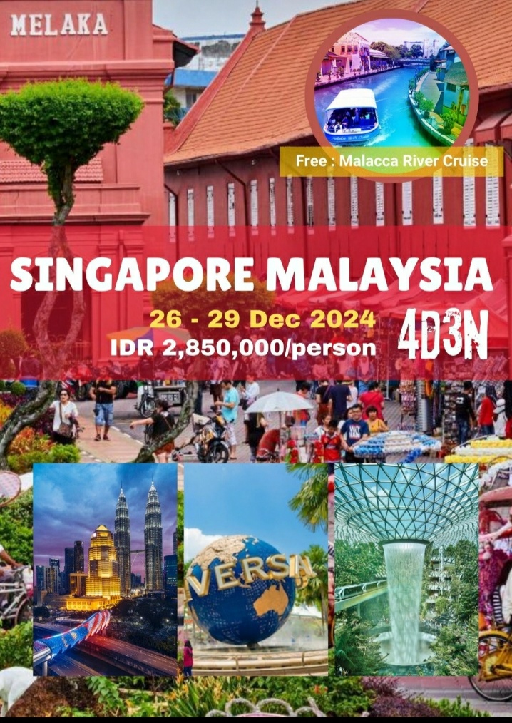 Tour yang akan di lakukan di tanggal 26-29 Desember ke Negara Singapura dan Malaysia, di bandrol dengan harga yang sangat terjangkau. Setiap orang hanya perlu mengeluarkan biaya Rp.2.850.000