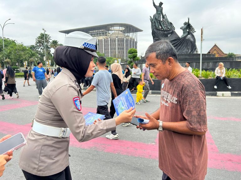 lingkupperistiwa.com, PEKANBARU, – Polwan dari Direktorat Lalu Lintas (Dirlantas) Polda Riau menggelar sosialisasi keamanan, keselamatan, ketertiban dan kelancaran lalu lintas (Kamseltibcarlantas) pada pengunjung Car Free Day di Kota Pekanbaru, Ahad (18/05/2025).