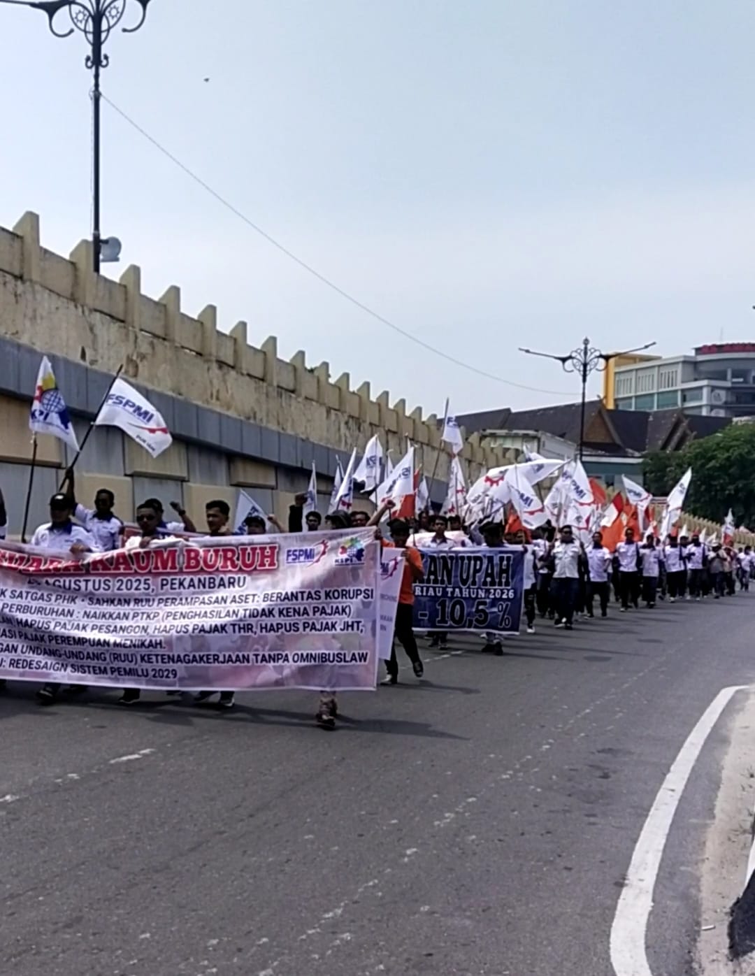 Dalam orasinya, Ketua DPW FSPMI Provinsi Riau, Satria Putra, menyampaikan seluruh aspirasi buruh yang tertuang dalam delapan poin tuntutan nasional. Ia menegaskan bahwa aksi damai ini adalah bentuk konsistensi FSPMI dalam memperjuangkan hak-hak normatif buruh serta mengawal kebijakan pemerintah agar berpihak pada pekerja.