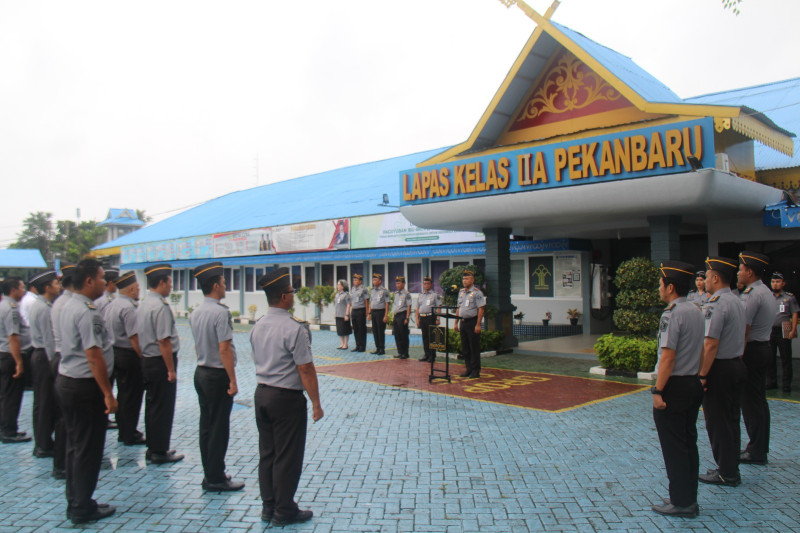 Bertempat di Halaman Kantor Lapas Pekanbaru, apel pagi diikuti mulai dari Pejabat Struktural, Jabatan Fungsional Tertentu (JFT), Jabatan Fungsional Umum (JFU) sampai dengan satuan pengamanan yang diwakili oleh Petugas Pengamanan Pintu Utama (P2U) serta Komandan Jaga.