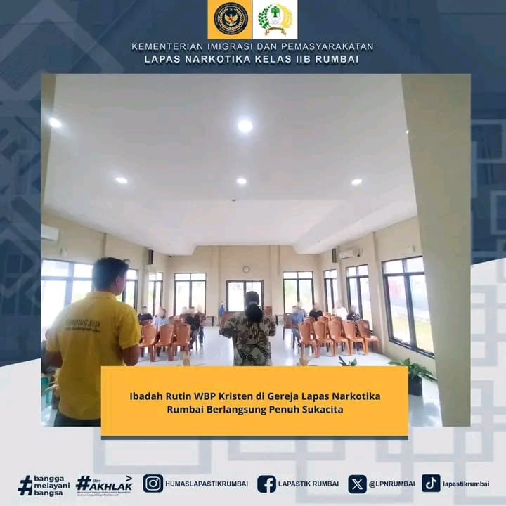 lingkupperistiwa.com, Pekanbaru – Kegiatan ibadah rutin bagi Warga Binaan Pemasyarakatan (WBP) beragama Kristen kembali dilaksanakan di Gereja Lapas dengan suasana yang penuh penghayatan (17/3/2026). Ibadah ini dipimpin oleh pembina kerohanian yang memberikan penguatan iman serta motivasi bagi para WBP untuk terus menjalani kehidupan dengan penuh harapan dan perubahan ke arah yang lebih baik.