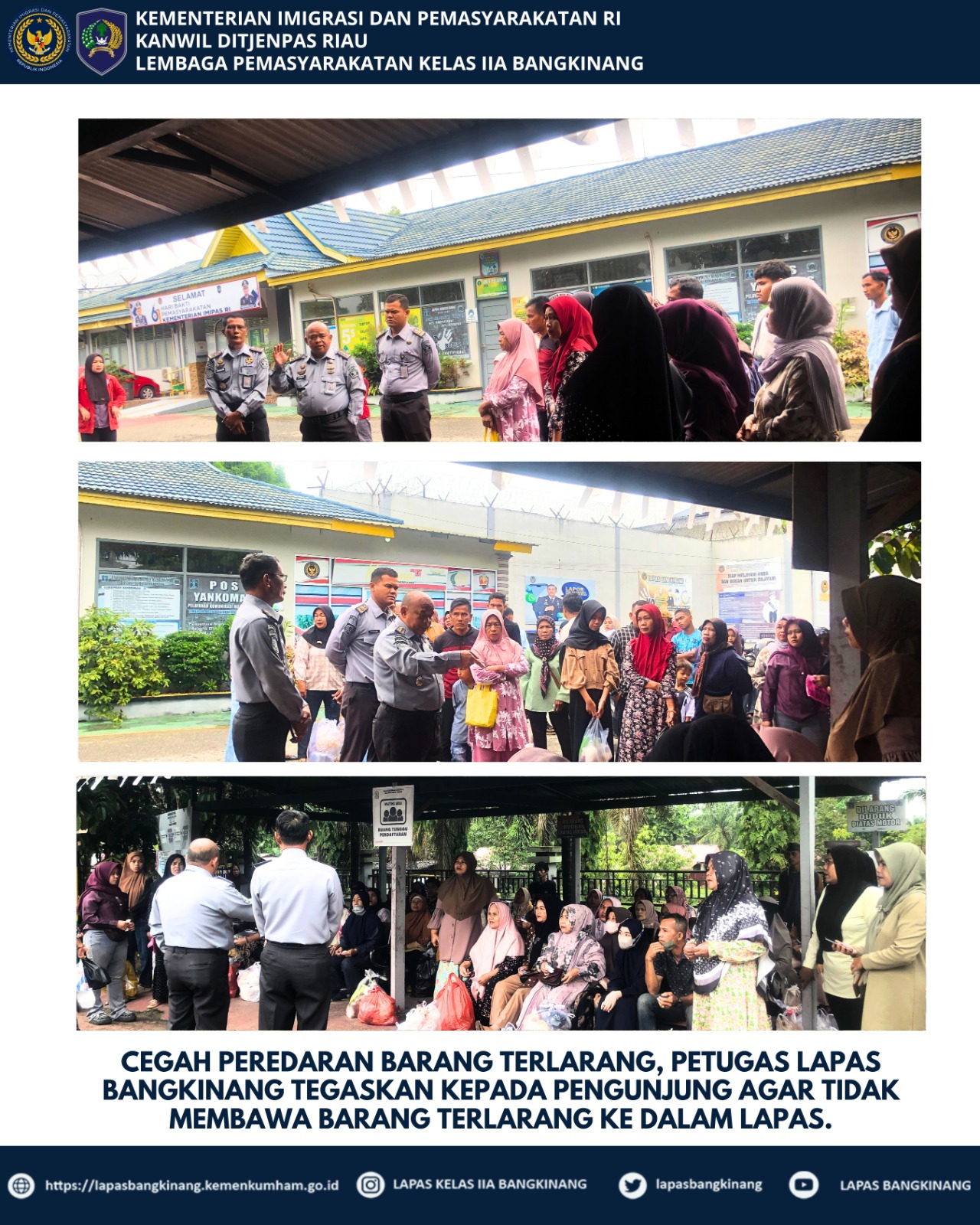 Kepala Lembaga Pemasyarakatan (Kalapas) Kelas IIA Bangkinang, Alexander Lisman Putra, melalui Ka KPLP, Muhammad Hasan dan Kasi Kamtib, Armaita, menegaskan kepada pengunjung agar tidak mencoba-coba membawa atau menyelundupkan barang terlarang ke dalam lapas.