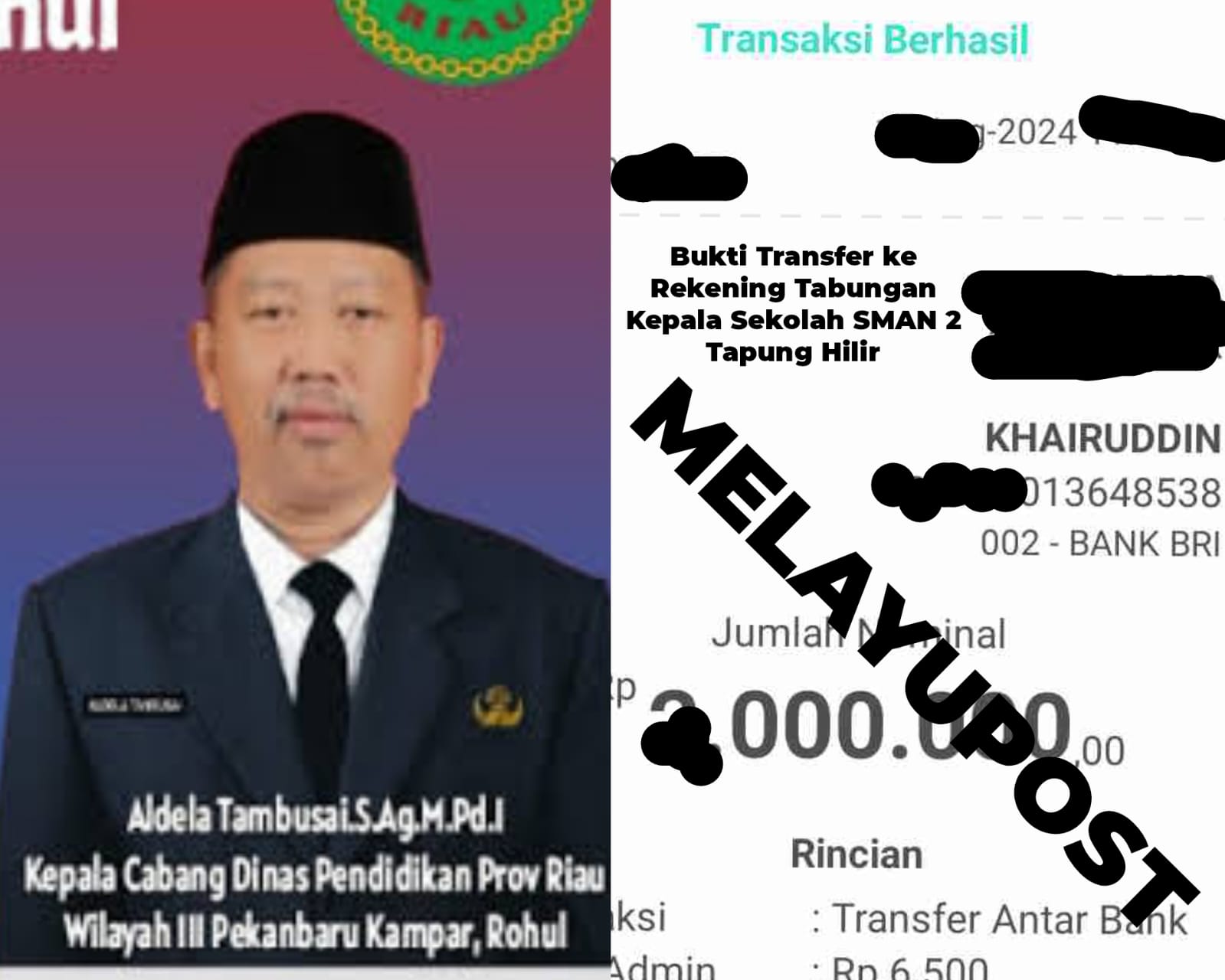 Parahnya lagi, diduga hal itu juga bekerja sama dengan salah satu Kepala Sekolah SMAN Negeri 2 Tapung Hilir (Khairuddin-red), kuat dugaan ada keterlibatannya, sebab uang pungutan tersebut dikumpulkan alias dikirim kan ke rekening Kepsek SMA Negeri 2 Tapung Hilir.