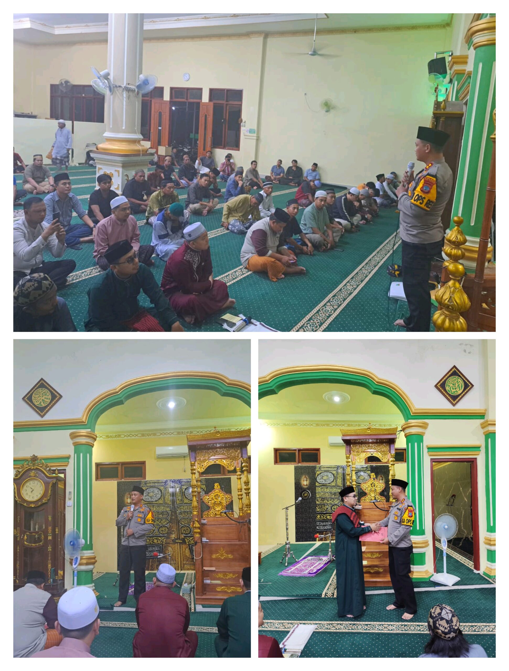 Sebelum lanjut sholat tarawih, Kapolres Kepulauan Talaud membawakan Sambutan serta imbauan kamtibmas, pada kesempatan yang sama, Pamen Polri ini menyerahkan bantuan sampul Ramadhan Suci untuk pembangunan Masjid Jabal Rahmah Melonguane.
