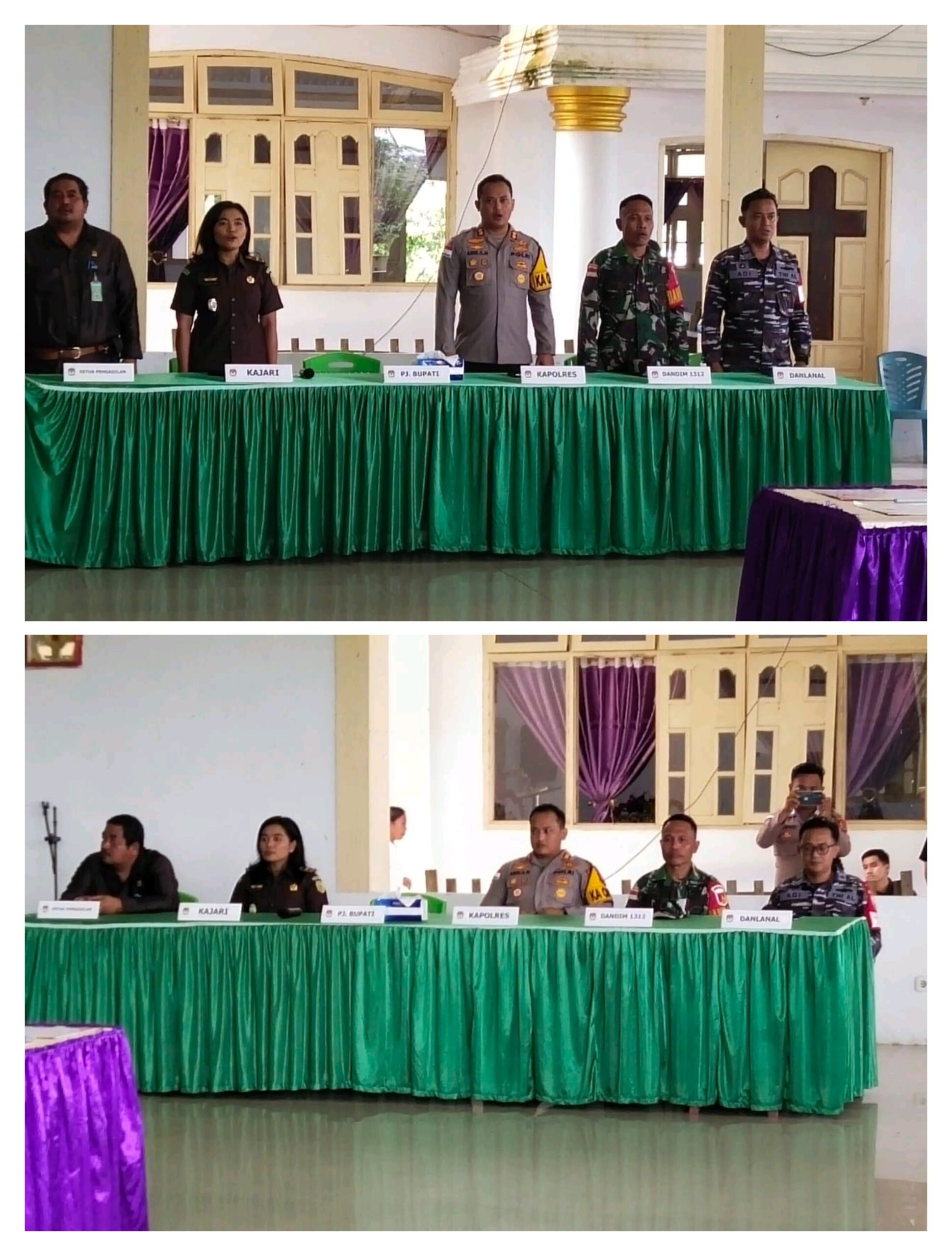 Turut Hadir dalam kegiatan Kapolres Kepulauan Talaud AKBP Arie Sulistyo Nugroho, S.I.K., M.H. Ketua KPUD Talaud, Andry L.J. Sumolang bersama Komisioner KPUD Talaud, mewakili Pj.Bupati Asisten I Tata Pemerintahan dan Kesra Daud Malensang, S.Sos, Kaban Kesbangpol Dr. Imen DJ. Manapode, S.Pd. M.Pd, Kabag OPS AKP Yakobus Melale,S.AB.S.H.,MM, Danposal Talaud Letda Laut S. Adisutrisno. Mewakili Danlanal Melonguane. Kapolsek Essang IPDA Sumendap Sasoloa, Serma Will B. Bee. Mewakili Dandim 13/12 Talaud (Danramil). Desliana Sitorus Mewakili Kajari Kabupaten Kepulauan Talaud (PLT Kasi Intel Kejaksaan). Joseh Risal, SH Mewakili Ketua Pengadilan (Panitera). Nelmar Tumbal, SH (Camat Essang). Glendi Dalope (Komisioner Bawaslu). Sidra Sofian (Komisioner Bawaslu) serta 62 Anggota KPPS yang akan dilantik dan Awak Media. (FW)