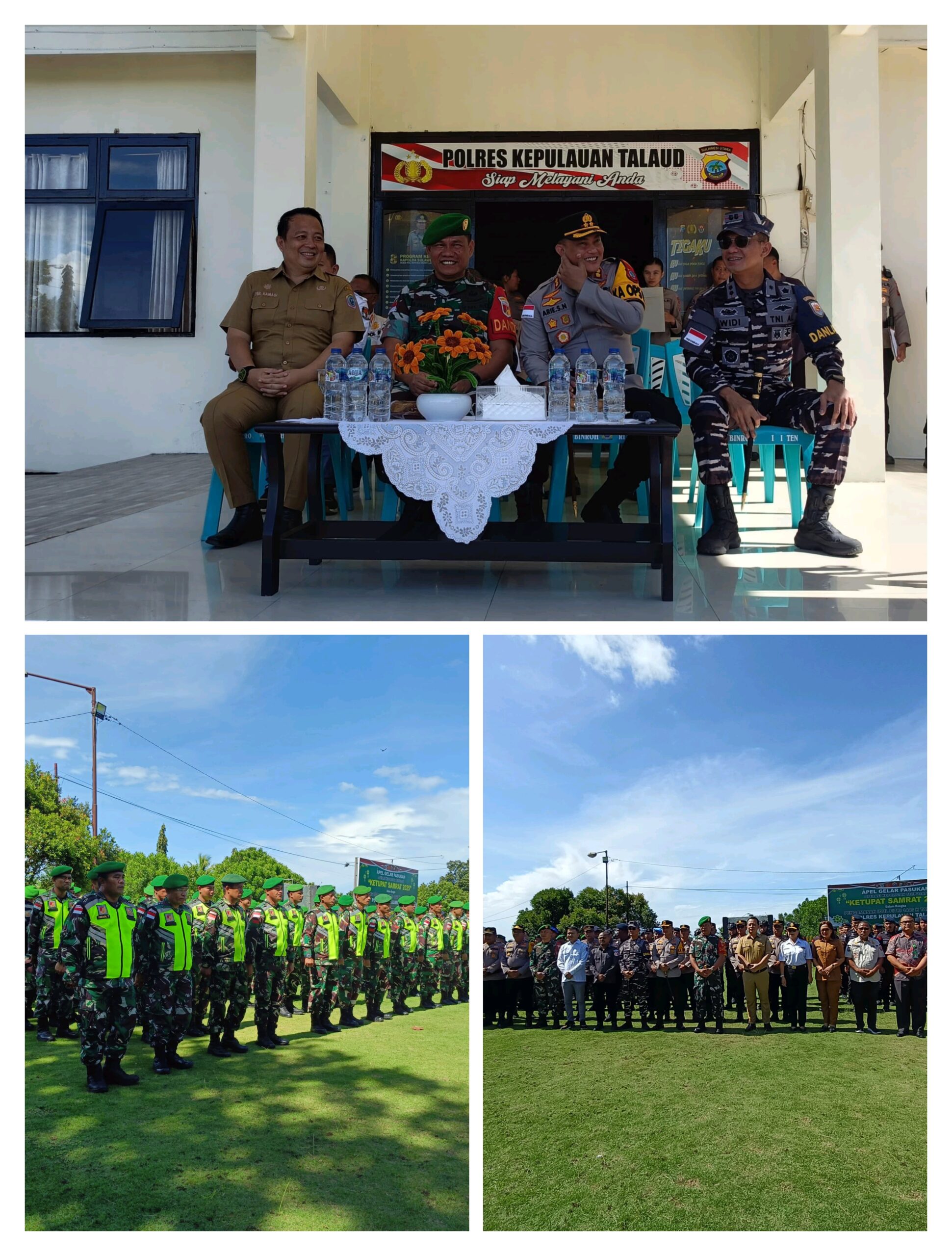 Apel turut dihadiri, Pj Bupati diwakili Sekretaris Daerah, Dr. Yohanis Baptista Kristo Kamagi, A.P., M.Si, Dandim 1312/ Talaud Letkol Inf Sigfried Wellem Panaha, S.Sos, Danlanal Melonguane Letkol Laut ( P) Widi Aditya, S.T., M.Tr.Opsla, Kapolres Kepulauan Talaud AKBP Arie Sulistyo Nugroho SIK. SH. Kadis Perhubungan Ir Leida Dachlan, M.M, Kasat Pol PP Drs Adrianson Taarega, Kadiv Teknis Penyelenggaran KPU Talaud Ahmad Faisal Tahir, S.I.Kom, Koordiv HP2H Bawaslu Talaud Sidra Sofyan, M.Pd, para PJU Polres Talaud, para dan Kapolsek jajaran. (Fany)