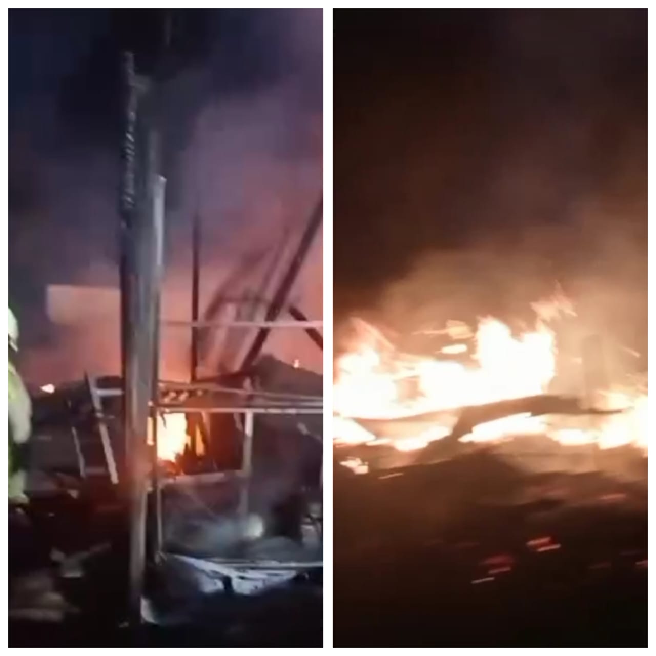 Kebakaran yang di duga akibat konsleting listrik, mengakibatkan 2 Rumah dan 1 warung kelontong Habis di lahap api.