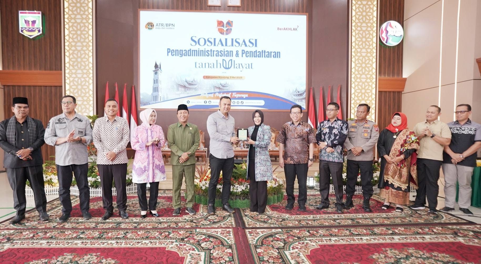 Sosialisasi yang diadakan di Balairung Lansek Manih, Kantor Bupati Sijunjung ini turut dihadiri oleh Kepala Kantor Wilayah (Kanwil) BPN Provinsi Sumatera Barat, Teddi Guspriadi; Kepala Kantor Pertanahan Kabupaten Sijunjung, Hendy Esa Putra, unsur Forkopimda terkait, lembaga adat, Kerapatan Adat Nagari (KAN), serta Bundo Kanduang. (*)