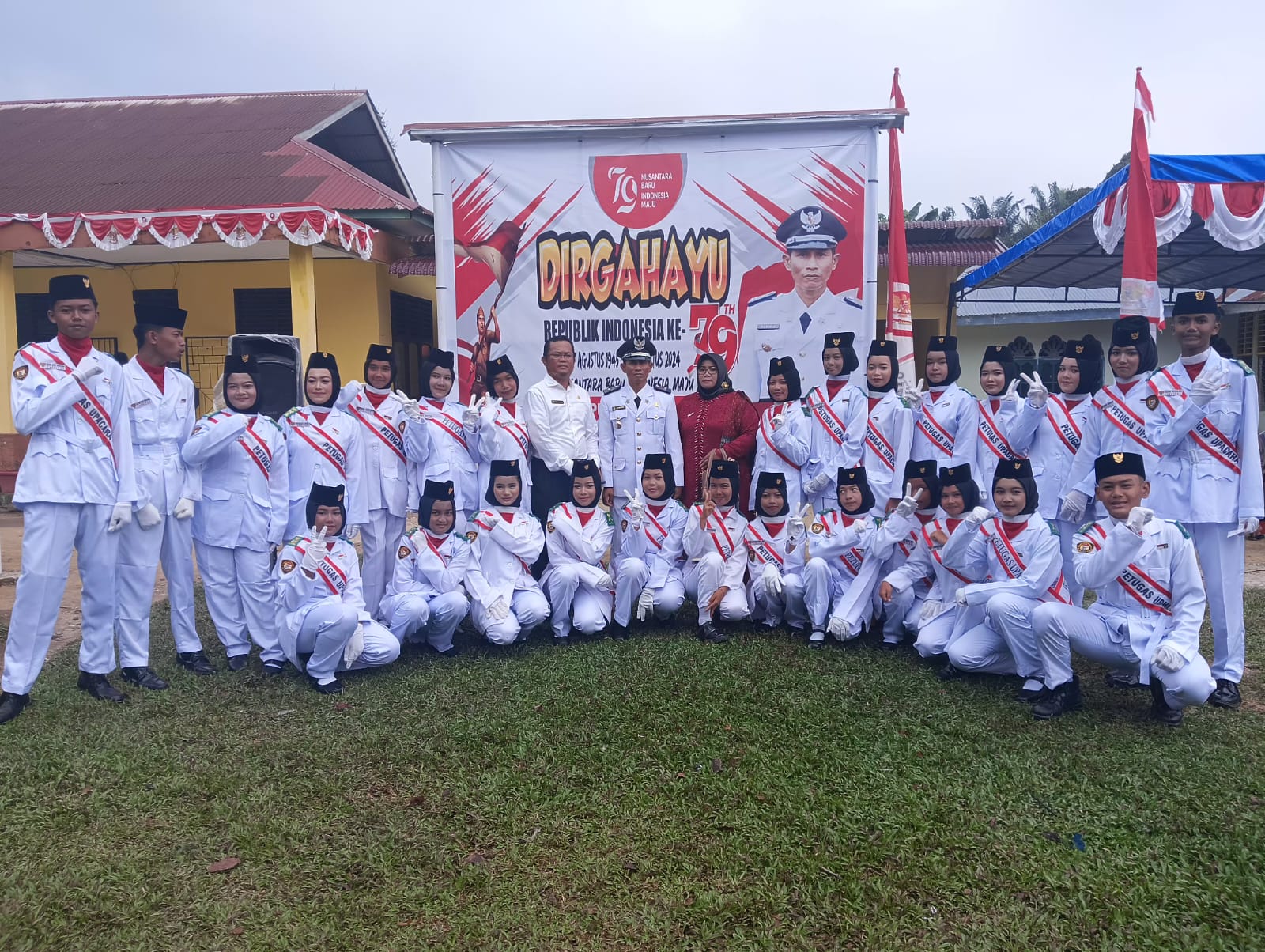 Riau-Pada hari Sabtu, 17 Agustus 2024. Dalam rangka menyambut Hari Kemerdekaan Indonesia yang ke-79 pada 17 Agustus 2024. Pemerintah kepala Desa Bernama:Samirin Bukit kemuning Indonesia telah merayakan HUT RI ke-79 pada 17 Agustus 2024 di depan lapangan kantor desa bukit kemuning. Kecamatan tapung hulu kabupaten Kampar.