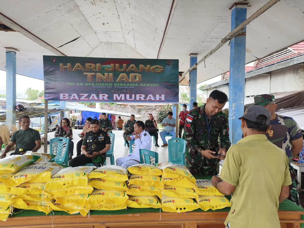 Lingkupperistiwa.com – Sulut-Talaud, Hari Juang TNI AD Tahun 2024 merupakan tonggak sejarah bagi TNI Angkatan Darat yang selalu kita peringati setiap tanggal 15 Desember, untuk memperingati Kodim 1312/Talaud kembali menggelar Bazar Murah di Pasar Tradisional Beo, Kelurahan/Kecamatan Beo. Kabupaten Kepulauan Talaud. Rabu (12/12/2024).