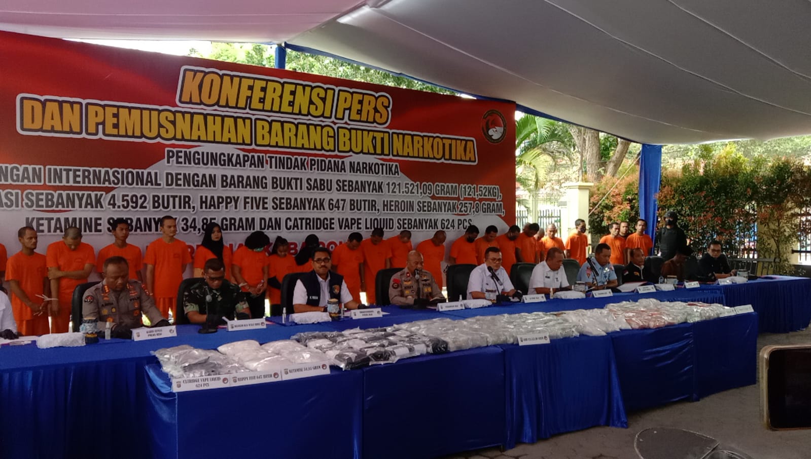Barang Bukti: Sekitar 121,5 kg sabu dan narkotika jenis lainnya.