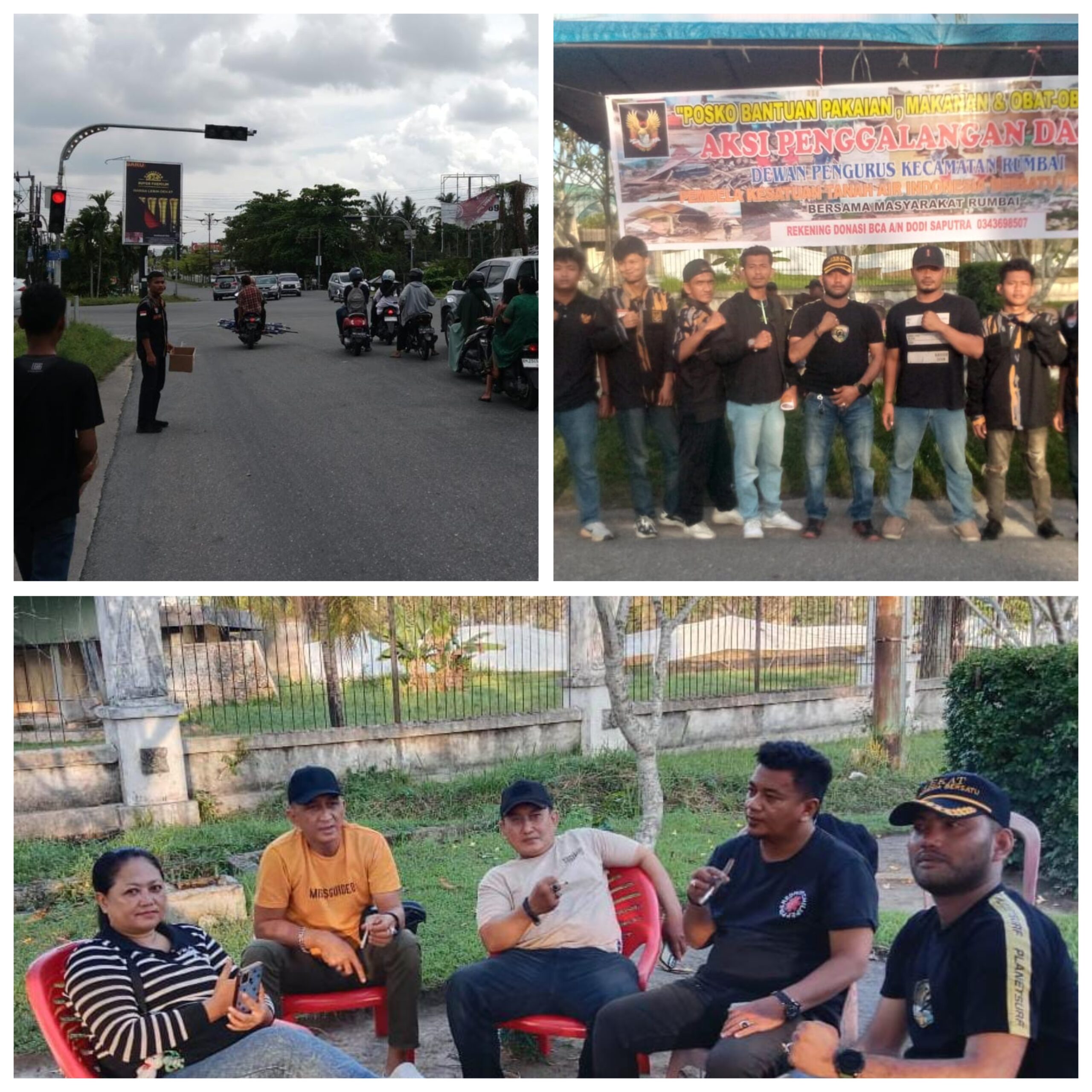 With the spirit of mutual cooperation, the DPK Rumbai management set up a tent for the Natural Disaster Care post which was led directly by the Chairman of DPK Rumbai “Bung Defri Tanjung” with unity, the Chairman of DPK Rumbai mobilized his staff to go directly to the highway to raise funds from the people passing by.