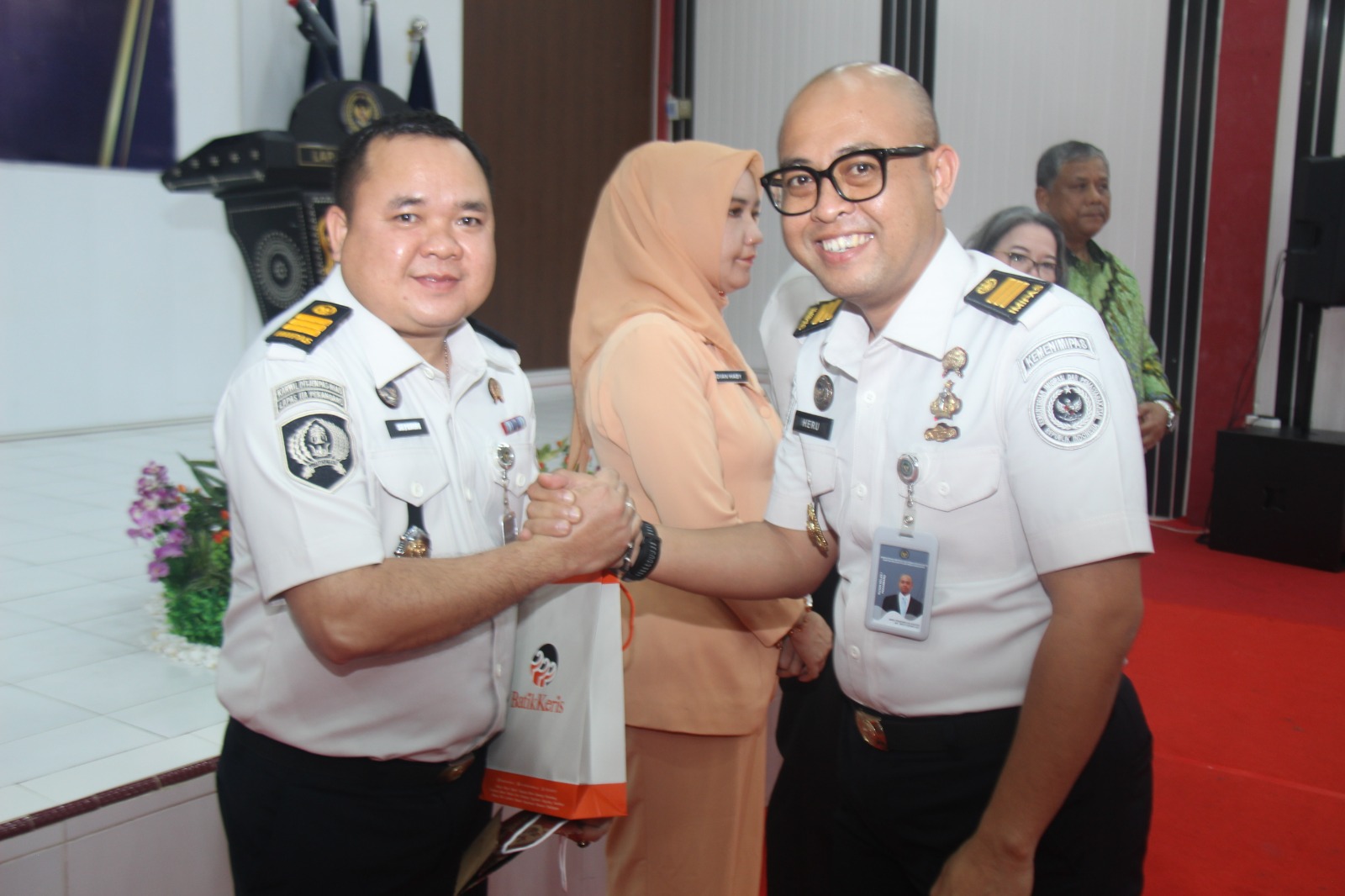 Acara diakhiri dengan penyerahan cenderamata dan sesi foto bersama sebagai bentuk penghormatan dan kenang-kenangan atas kebersamaan selama bertugas di Lapas Kelas IIA Pekanbaru.