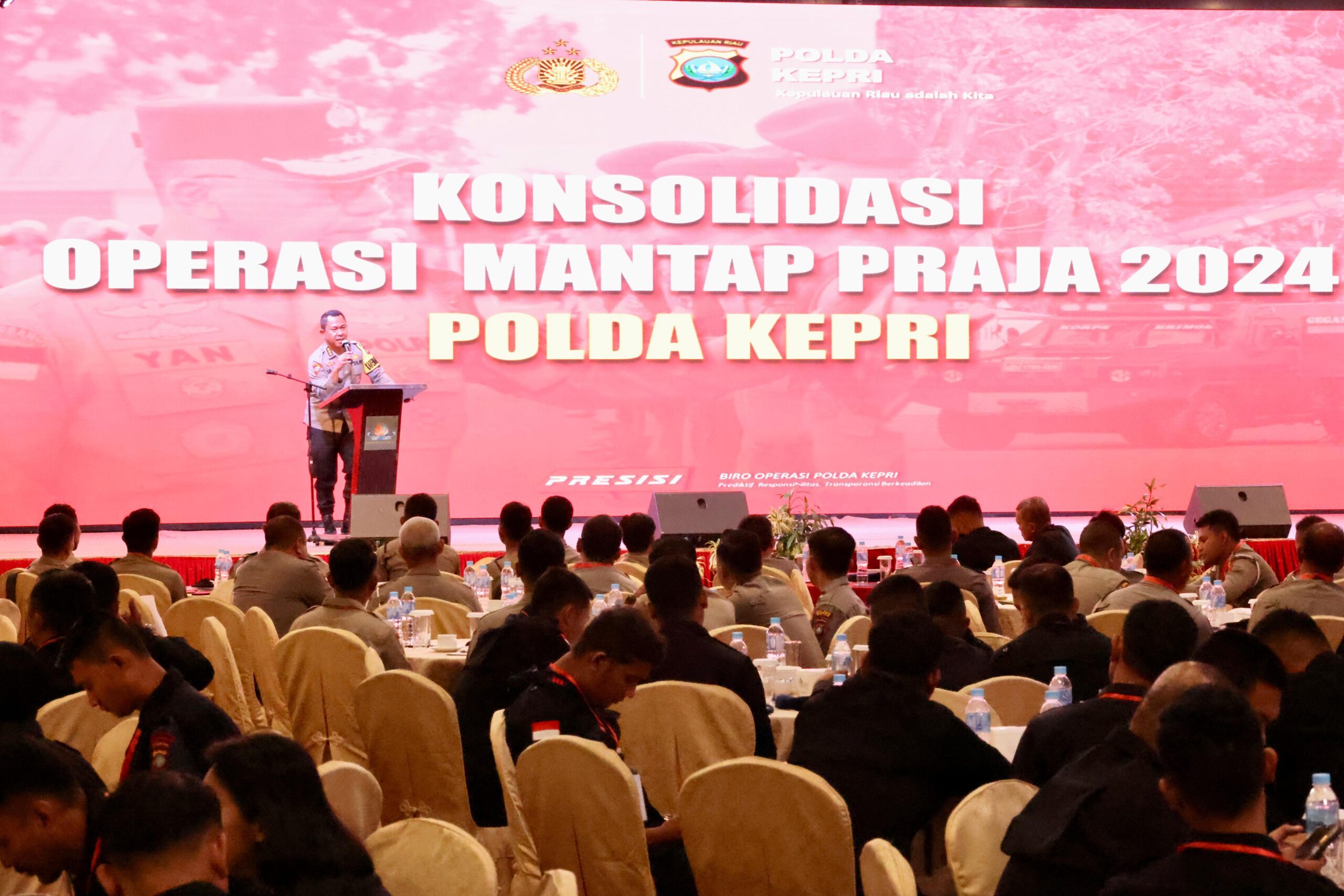 cMczone.com, Batam – Dalam rangka berakhirnya Operasi Mantap Praja (OMP) Seligi 2024, Polda Kepri menggelar kegiatan Konsolidasi OMP Seligi 2024 di Ballroom Hotel Pasifik Batam. Acara ini dihadiri oleh Karoops Polda Kepri Kombes Pol. Ulami Sudjaja, S.H., Ketua KPU Provinsi Kepri Indrawan Susilo Prabowoadi, S.H., M.H., Ketua Bawaslu Provinsi Kepri yang diwakili oleh Kordiv Penanganan Pelanggaran, Data, dan Informasi, Rosnawati, serta seluruh Kasubsatgas dan anggota OMP 2024 ini bertujuan mengevaluasi pengamanan Pilkada 2024. Jumat (27/12/2024).