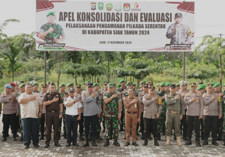 lingkupperistiwa.com, Siak,– Dalam rangka evaluasi dan konsolidasi pelaksanaan pengamanan Pemilihan Kepala Daerah (Pilkada) serentak 2024, Polres Siak dan Kodim 0322 / Siak menggelar apel yang dipimpin oleh Kapolres Siak, AKBP Asep Sujarwadi, SIK, MSI, dan Dandim 0322/Siak, Letkol.Arh Riyanto Budi Nugroho, M.Han. Selasa (17/12/2024).