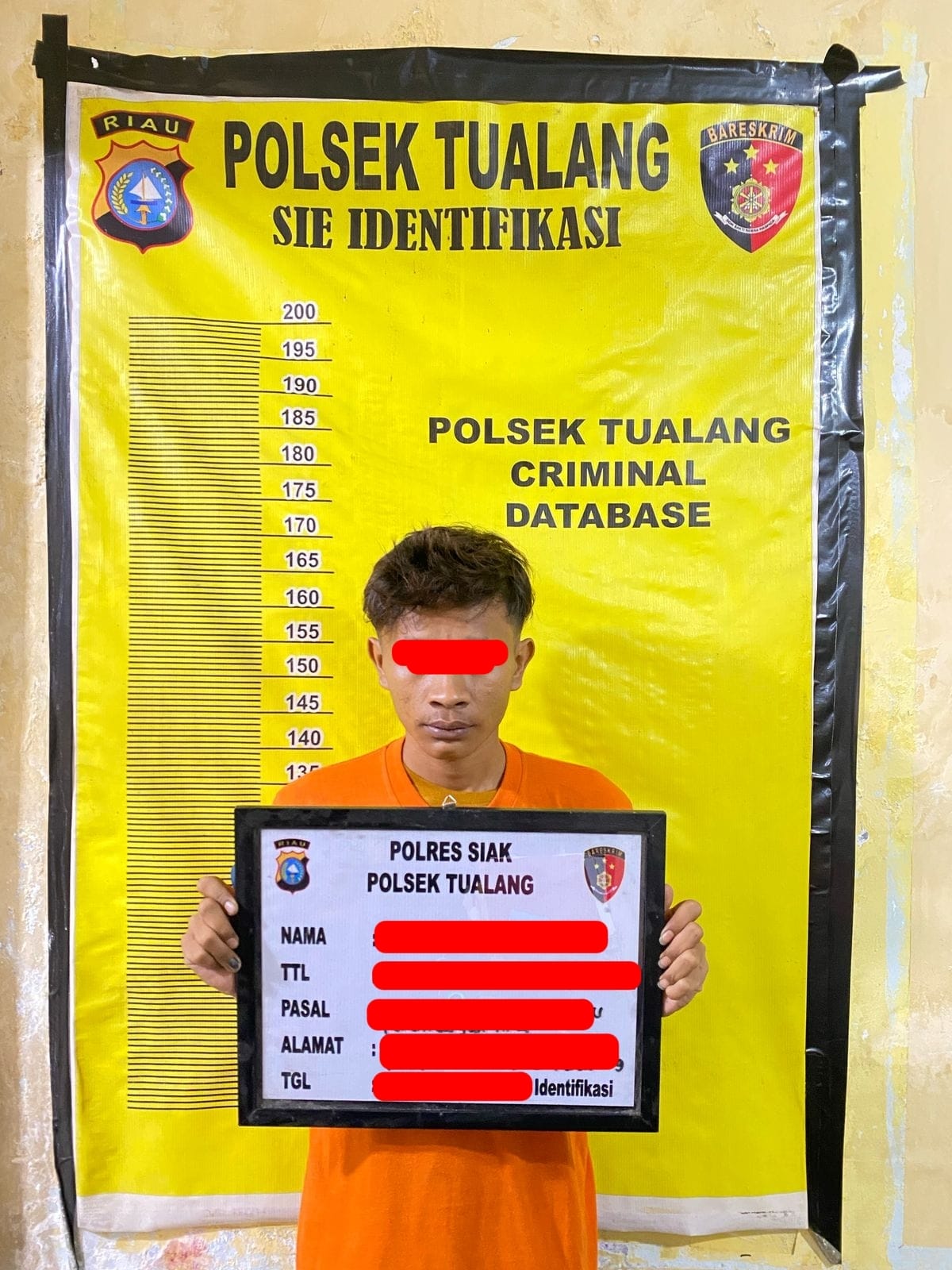 Kapolres Siak AKBP Eka Ariandy Putra SH,S.I.K,M.SI melalui Kapolsek Tualang Kompol Hendrix.SH.MH mengatakan bahwa pelaku Inisial RAM Ala R telah diamankan oleh Personil Polsek Tualang yang terjadi Pada Hari Rabu tanggal 23 April sekira pukul 21.00 Wib di Wisma Mitra Kel. Perawang Kec. Tualang Kab. Siak tindak pidana persetubuhan anak dibawah umur.