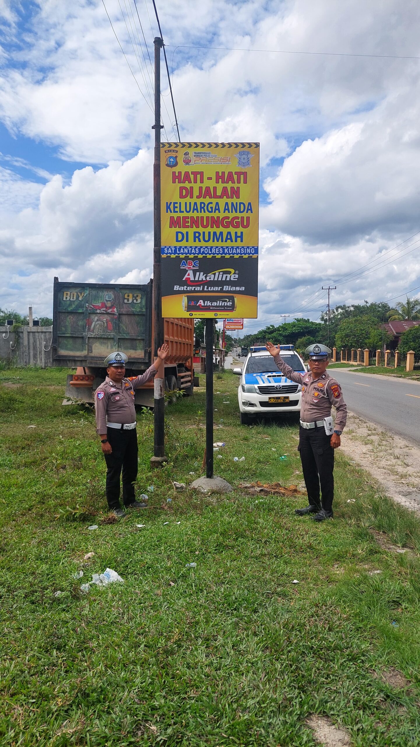 Spanduk himbauan dipasang di beberapa titik strategis yang sering menjadi lokasi kecelakaan dan pelanggaran lalu lintas, di antaranya Seputaran Kota Teluk Kuantan, Kecamatan Kuantan Tengah, Jalan Lintas Pekanbaru – Teluk Kuantan Kecamatan Singingi, dan Jalan Lintas Pekanbaru – Teluk Kuantan Kecamatan Singingi Hilir. Spanduk yang dipasang berisi pesan-pesan keselamatan berlalu lintas seperti “Utamakan Keselamatan, Jangan Ngebut!”, “Gunakan Helm Standar, Sayangi Nyawa Anda!”, dan “Jaga Jarak, Waspada di Jalan!”.