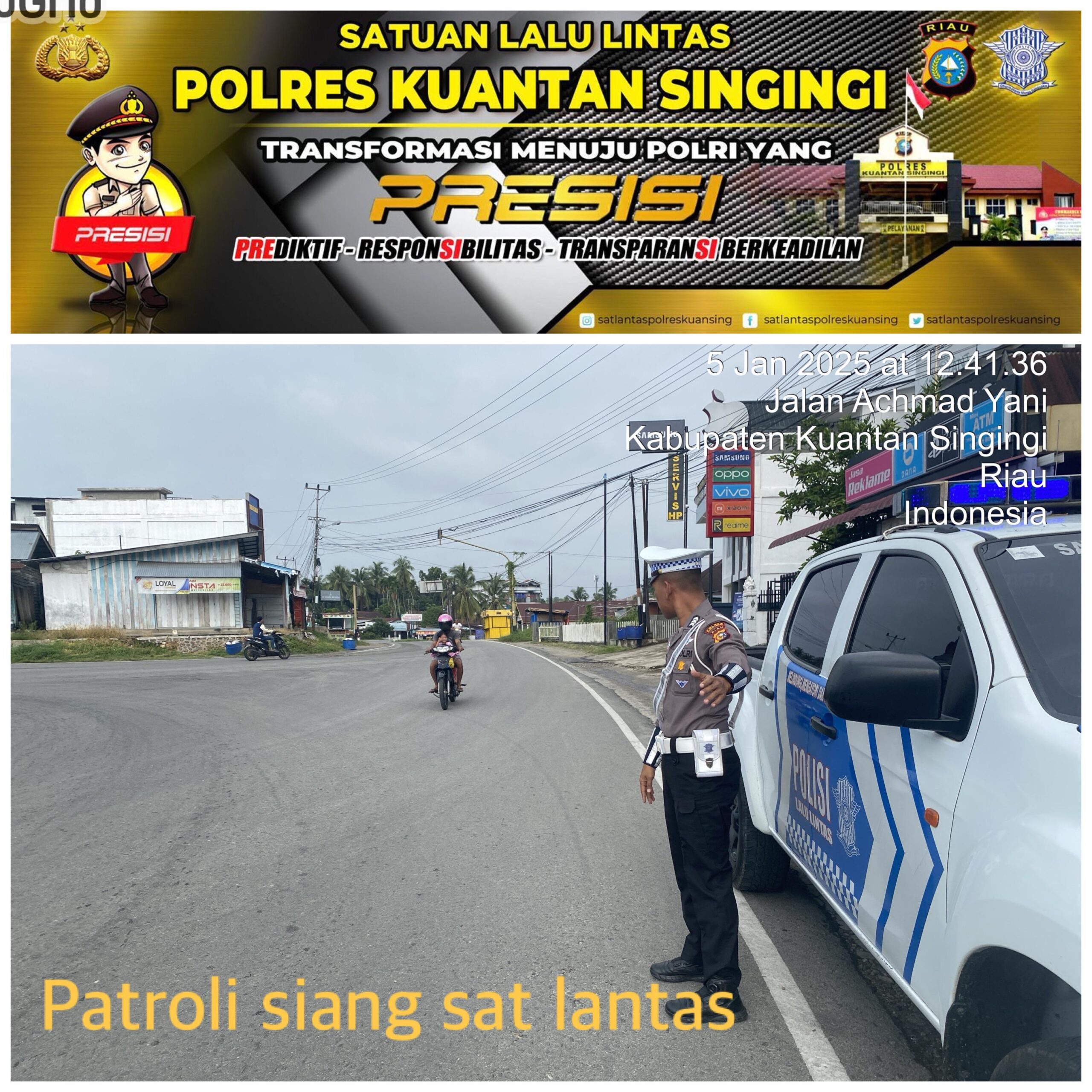 lingkupperistiwa.com, KUANTANSINGINGI,– Dalam rangka menjaga keamanan, keselamatan, ketertiban, dan kelancaran lalu lintas (Kamseltibcarlantas), Satuan Lalu Lintas (Sat Lantas) Polres Kuantan Singingi (Kuansing) melaksanakan patroli siang di berbagai titik rawan kecelakaan lalu lintas (laka lantas), balap liar, dan kejahatan jalanan (C3 – Curat, Curas, Curanmor). Patroli ini dilaksanakan pada Minggu (5/1/2025), mulai pukul 13.00 WIB hingga selesai.