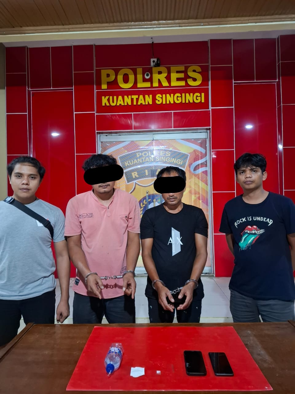 Kapolres Kuantan Singingi, AKBP Pangucap Priyo Soegito, S.I.K., M.H., melalui AKP Novris H. Simanjuntak, S.H., M.H. menyampaikan “Dalam penggeledahan, kami menemukan satu paket plastik klip bening berisi narkotika jenis shabu di samping tempat duduk mereka. Saat diinterogasi di lokasi, mereka mengakui bahwa barang tersebut milik mereka dan diperoleh dari seseorang berinisial A, yang saat ini berstatus DPO (Daftar Pencarian Orang),” jelas AKP Novris.