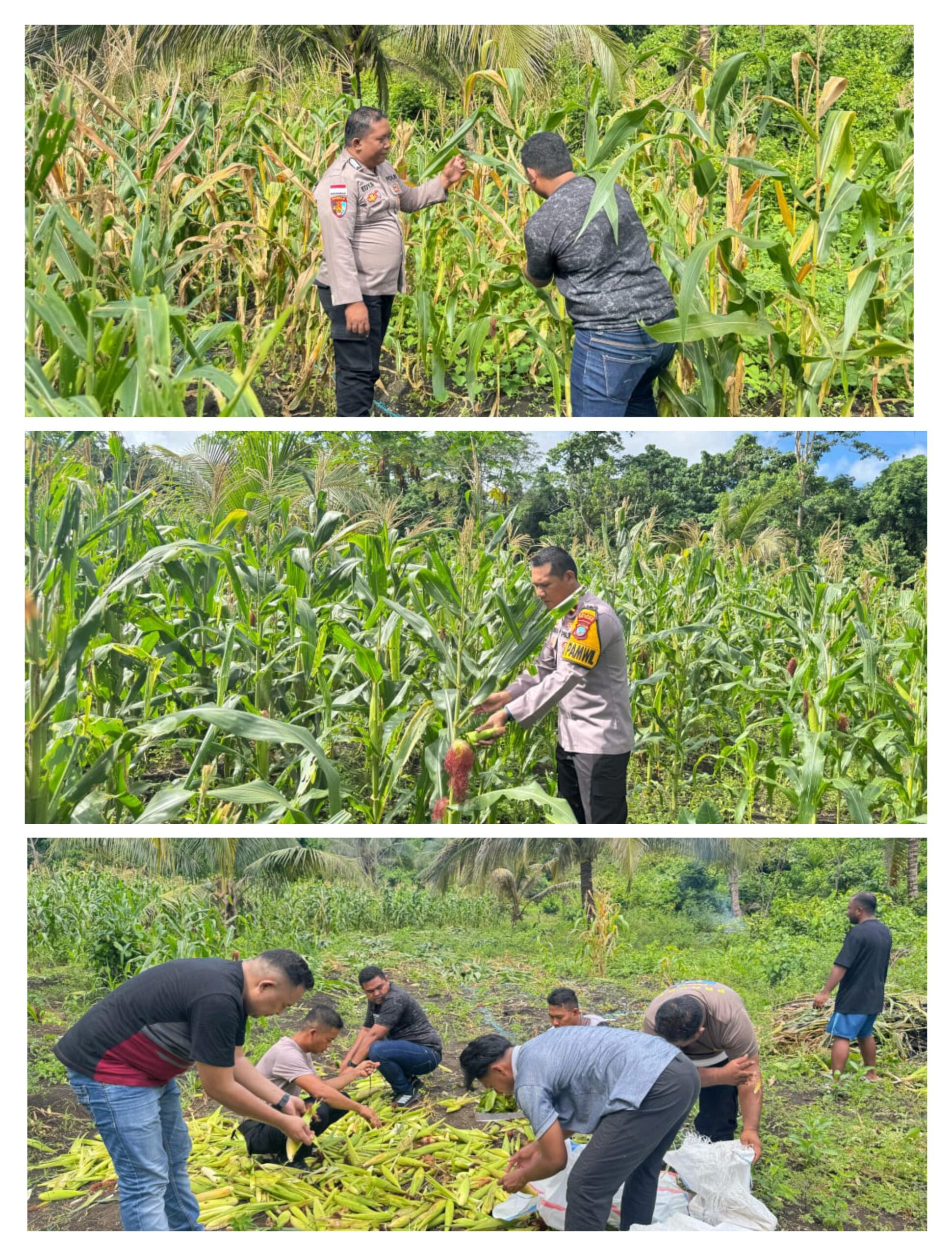 Kegiatan panen jagung bersama warga Desa Taduna, di wilayah binaanya berjalan dengan aman dan lancar. (FW)